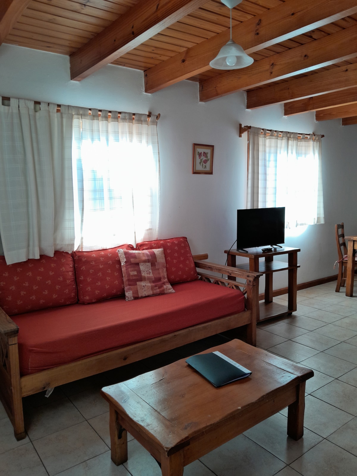 Luminosa cabaña totalmente equipada para alojar hasta 4 personas en San Martín de los Andes, a pocos kilómetros del Lago Lolog y el Lago Lacar. El lugar cuenta con 2 habitaciones, 3 camas, 1 baño, living comedor, cocina completa, deck con parrilla y estacionamiento para 3 autos (Información detallada del equipamiento de cada ambiente abajo en la descripción). Beneficios para huéspedes: - 15% de descuento en alquiler de ski, snowboard y bicicletas (en la tienda Adventure Store)