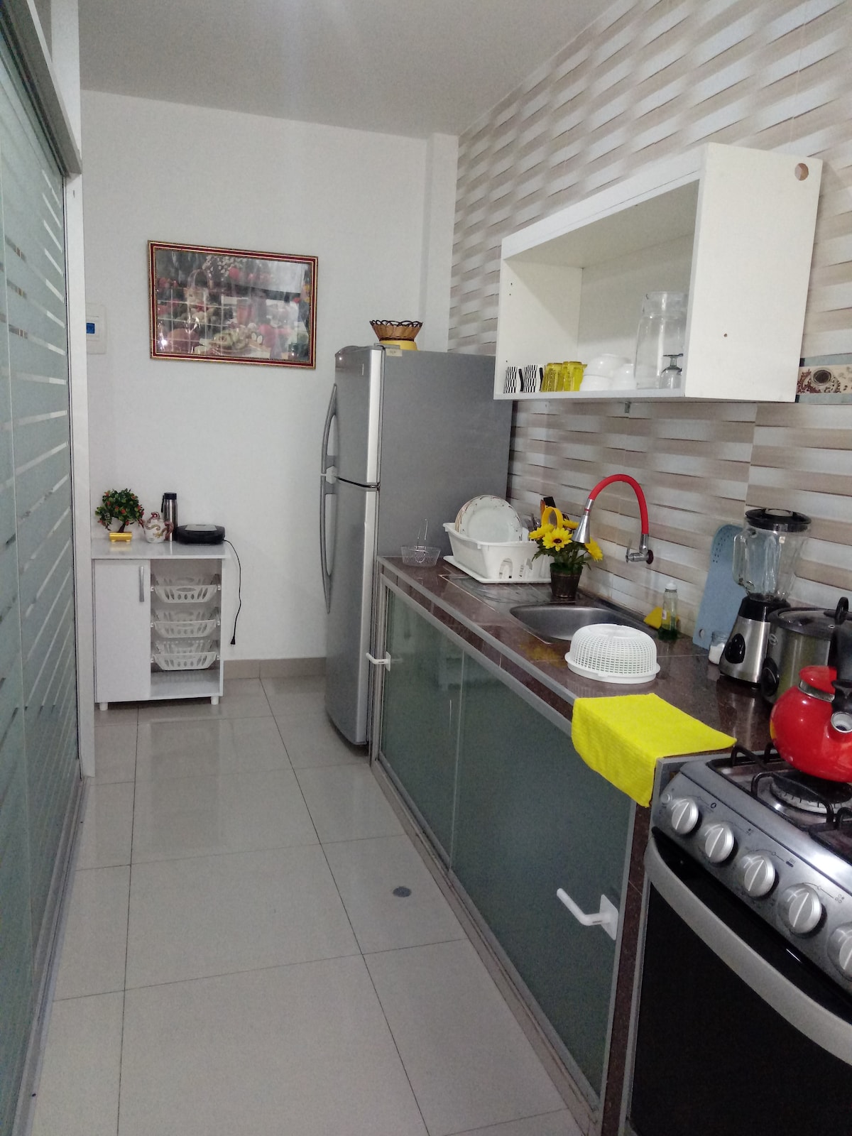El departamento está a 10 -15 minutos del aeropuerto ideal para turistas, viajeros y personas profesionales, está situado dentro de un condominio con seguridad las 24 horas, cuenta con TV 55 pulgadas, wifi, área de trabajo independiente, dgo, prime , Movistar TV ,ventilador, cocina 100% equipada, cuartos amplios y cómodos. El departamento está en el piso 6 del condominio ciudad nueva, el condominio tiene el servicio de lavado y secado de prendas.