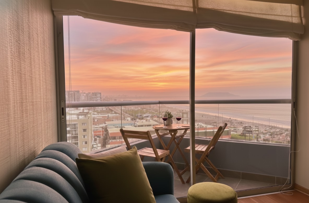 Un refugio frente al mar pensado para dos. Ubicado en San Miguel, a solo 15 minutos del Aeropuerto Jorge Chávez y a 5 minutos del centro de espectáculos Arena 1 en la costa verde. Cuenta con cocina equipada, 2 baños completos y un balcón privado frente al mar. Perfecto para conciertos, escapadas románticas, vacaciones o viajes. Con WiFi rápido, Smart TV con cuentas de Netflix, Disney y Star+ para una estadía cómoda y placentera. Cochera techada con pago adicional.