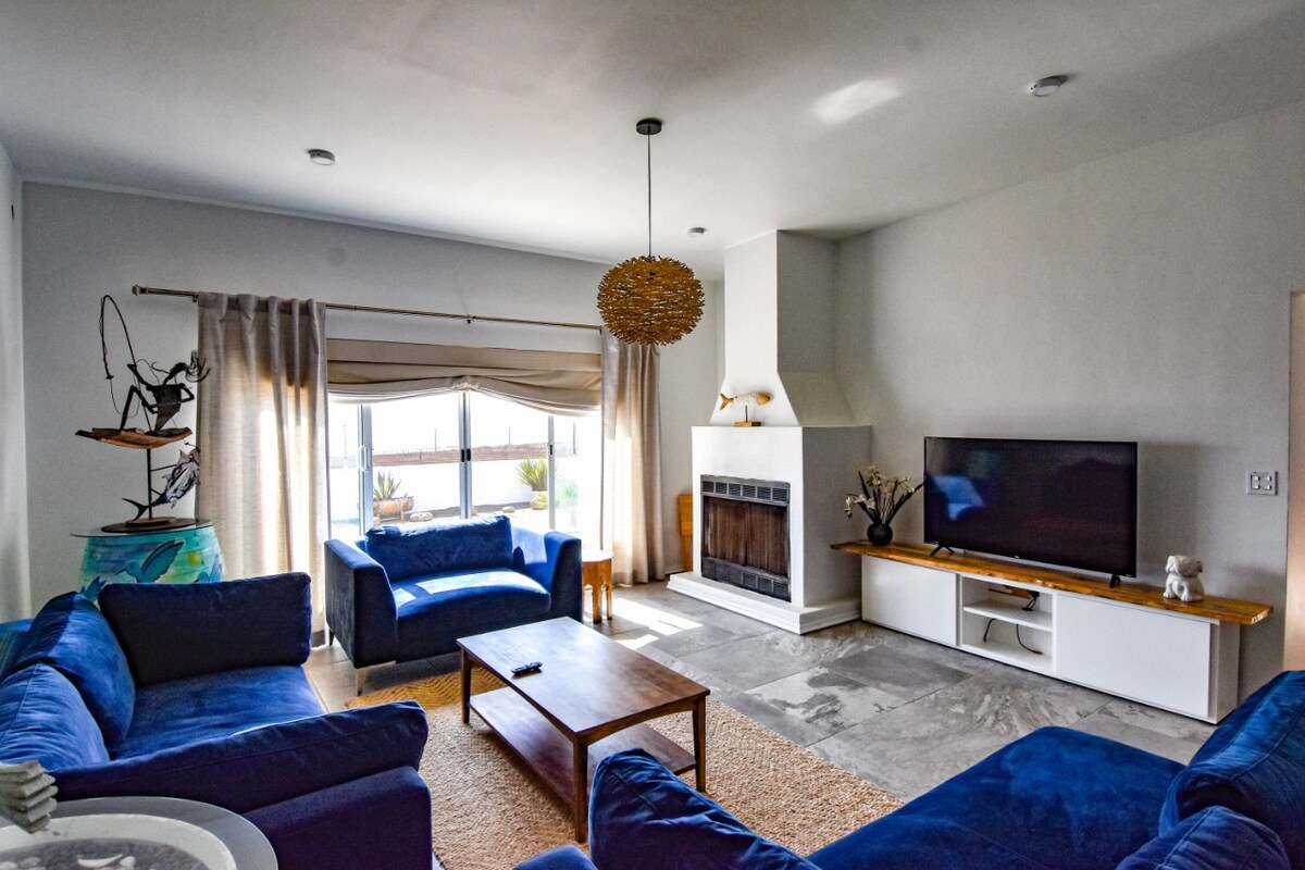 Hermosa casa de tres pisos en San Miguel/Ensenada, a 300 pies de la playa y del rompeolas. Disfruta de la vista al mar y de las increíbles puestas de sol desde todas las habitaciones y la amplia terraza (fogata, conjunto de cojines en el patio, minibar, hamaca, mesa de comedor). Perfecta para la oficina en casa, un escritorio grande (15 pies de largo y 2 sillas) con una amplia vista al mar. Evita sentirte confinado con paseos por la playa. ¿Necesitas hacer más ejercicio? Prueba a utilizar el rocódromo interior (gran crashpad incluido).
