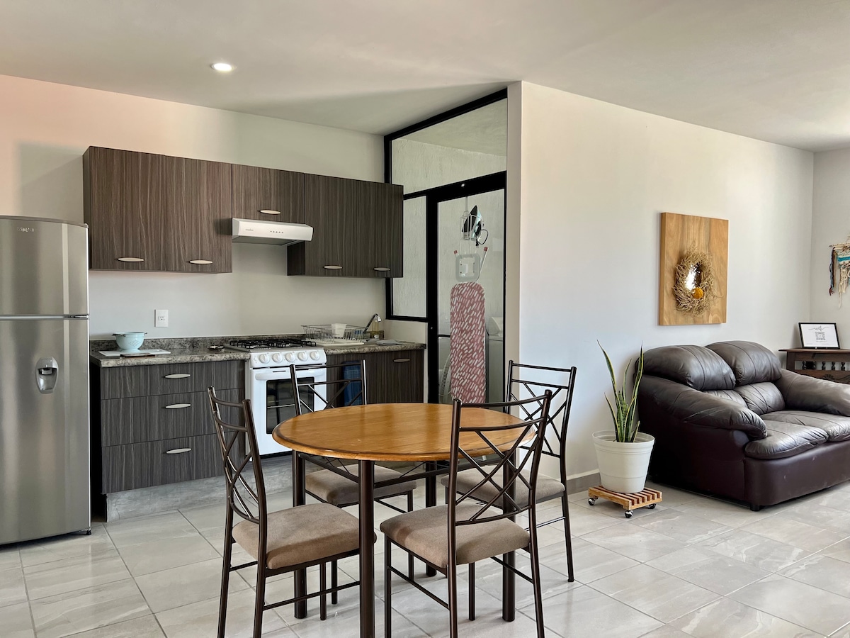 Disfruta de un espacio cómodo y tranquilo, ideal para una pareja o un viajero solo. A tan solo 15 minutos del Jardín Principal, estarás cerca de mercados y tiendas locales. Ademas incluye estacionamiento justo enfrente del apartamento, del otro lado de la calle. Al igual podrás disfrutar de un cafe y la terraza con vistas hacia el centro. Perfecto para explorar la magia de San Miguel mientras te sientes como en casa. Te esperamos!