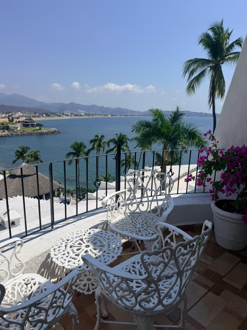 Hermoso departamento con 2 recámaras con vista al mar. Terraza y comedor al aire libre donde podrás disfrutar las hermosas vistas de Manzanillo y desconectarte por un tiempo. Cuenta con cocina equipada, 2 baños completos, 4 camas, comedor y sala. Puedes disfrutar la alberca del condominio, playas y restaurantes cercanos, a 10 mins del club de golf las hadas y arriba del club de yates de las Hadas. Para accesar se requiere subir un nivel por escaleras.