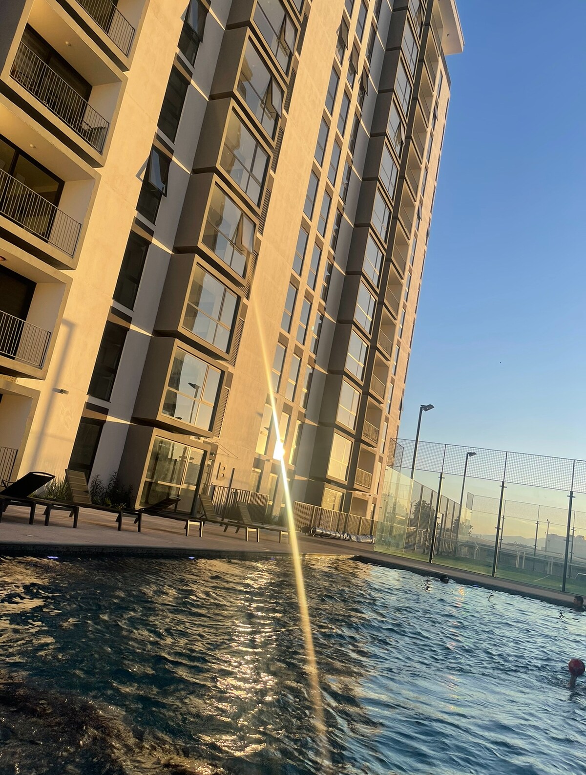 Elegante departamento de 2 recámaras en el cuarto piso con elevador, ubicado en exclusiva zona residencial. Cuenta con cocina equipada, sala y comedor amplios, estacionamiento gratuito y amenidades como alberca, gimnasio y salón de estar. A pasos de malls, bancos, restaurantes y tiendas. Con acceso rápido al aeropuerto por vía principal. Ideal para familias o viajes de negocios que buscan comodidad, ubicación y estilo.