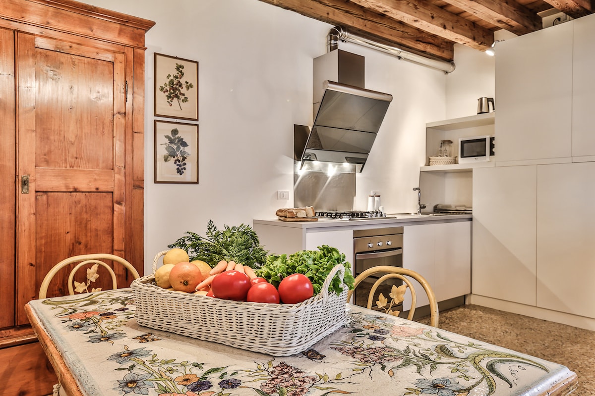 Apartamento de 60 m2 con vistas a un canal, recién restaurado manteniendo elementos clásicos venecianos (suelo tradicional istriano en piedra y techo de madera), tiene Wi-fi, 2 TV, aire acondicionado, lavadora, secador de pelo, una cocina de acero equipada (horno, nespresso, hervidor de agua), una sala de estar con sofá, una cama doble king size, un baño increíble.