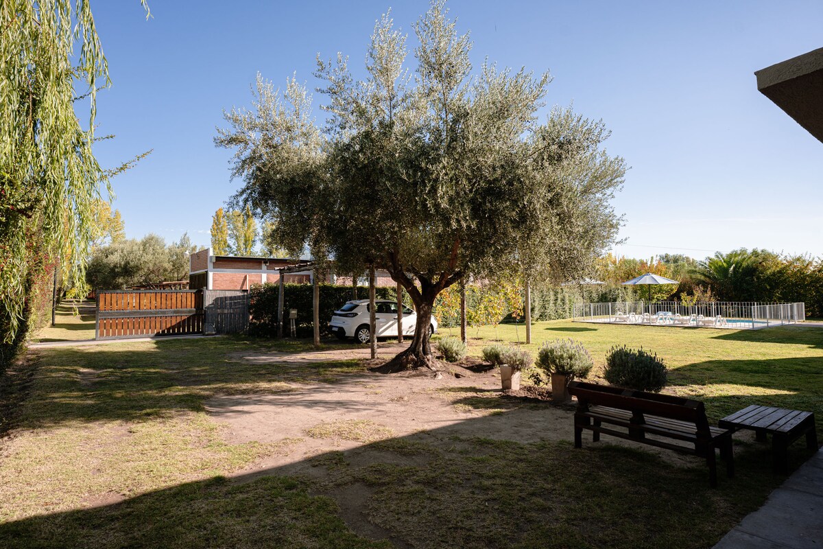 Imaginate despertar entre las montañas, con rayos de sol por la ventana! Disfrutá de tu desayuno en un parque verde, rodeado de aire puro y la belleza de la naturaleza.. Este será tu refugio por algunos días. Te esperan instantes de tranquilidad, encuentro y diversión. Toma un respiro, admira la tranquilidad, escapa del bullicio y, a solo unos 200 metros, sumérgete en la experiencia de contemplar el río Atuel. Vení y hace de "Refugio Retama" el escenario de tus recuerdos más especiales!