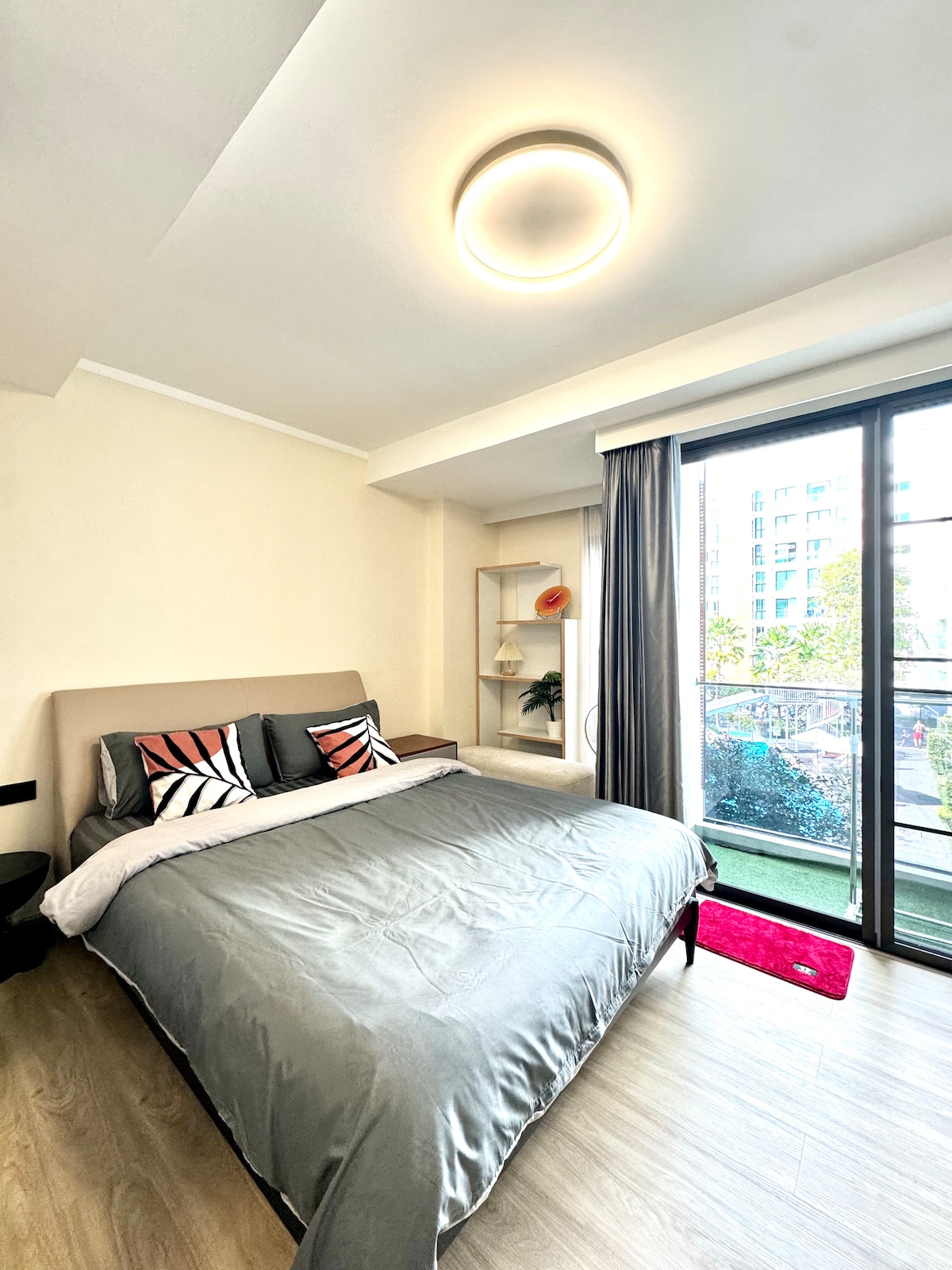 1 dormitorio, 1 sala de estar, cocina de concepto abierto (piso 20+). Nuevo edificio de apartamentos con bonitos paisajes e impresionantes piscinas en la azotea, gimnasios. Junto al centro comercial más grande, «Central Festival», a tiro de piedra. Wifi de fibra de alta velocidad de 500/500 Mbps y canales de televisión internacionales por cable.
