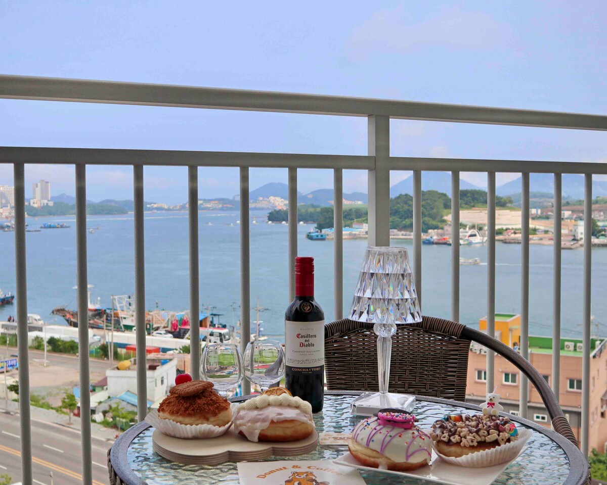 [Nuevo dúplex] Ciudad de Yeosu · Terraza con vista al mar/Odongdo · Acuario a pie/Netflix