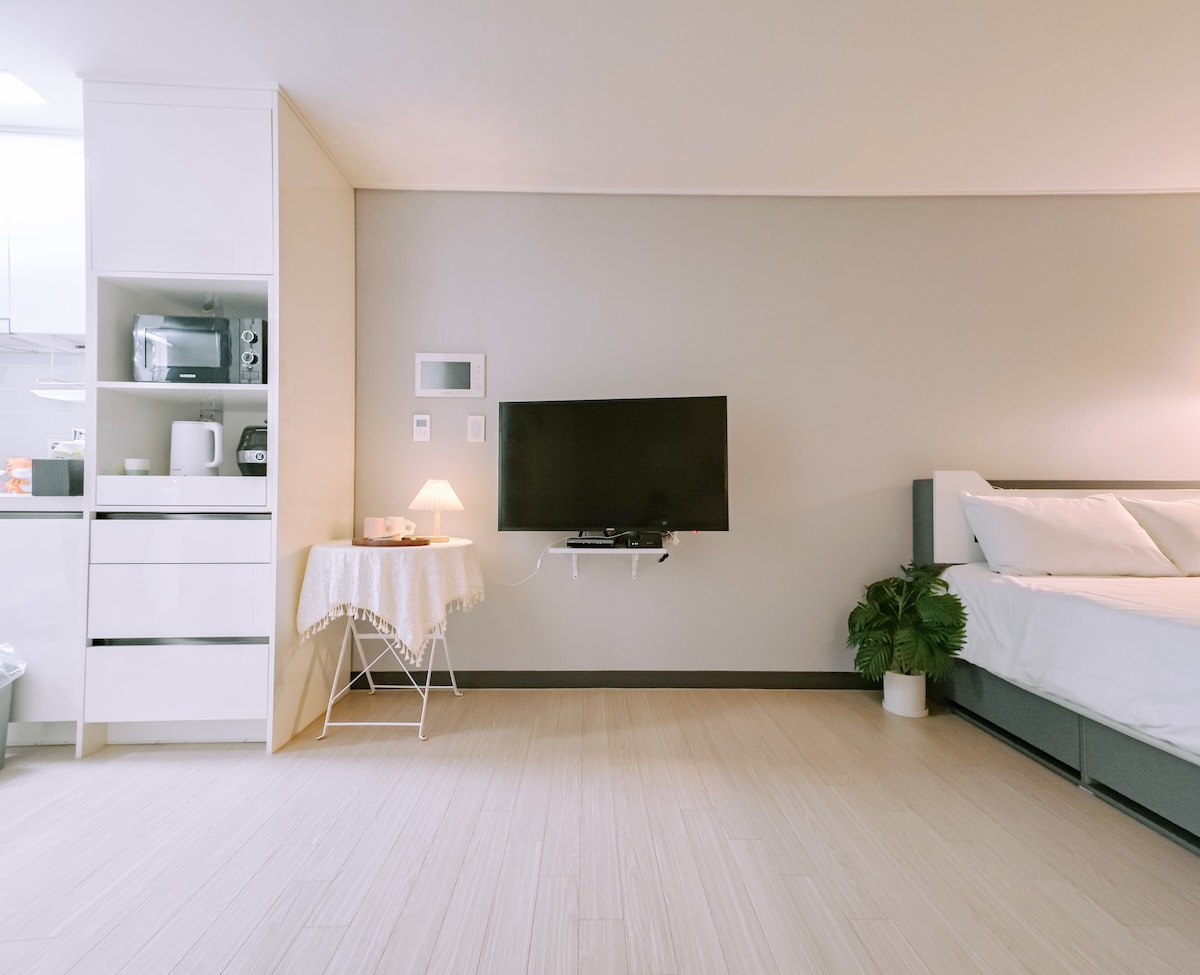 Estacionamiento gratuito/Descuento por noches consecutivas/Autorregistro de entrada/Odongdo Camellia/Plaza Yi Sunshin a 10 minutos/Netflix/Lotte Mall a 3 minutos Dongdong 1