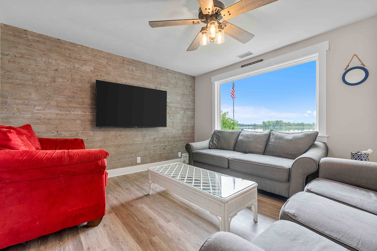 Encantadora casa de campo de dos dormitorios que cuenta con 280 pies de fachada al lago. Gran espacio para familias o parejas. Disfruta de tus días pescando, nadando, haciendo piragüismo, remando o, si te sientes perezoso, relájate echando una siesta en uno de los dos columpios junto al lago. Saborea tu tarde tomando una bebida y asando a la parrilla en la terraza. Por la noche, relájate junto al fuego y el bar tiki, disfrutando de s'mores y creando recuerdos que durarán toda la vida.