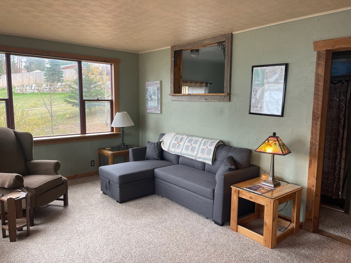 Ven a relajarte, disfruta de una taza de café mientras lees un libro. Disfruta de una buena comida en la ciudad o en la terraza de tu propia cabaña privada con vistas a nuestro estanque y arroyo. Hay muchas actividades divertidas al aire libre en la zona, como senderismo, ciclismo, kayak, caza, pesca, esquí, golf, a solo 20-30 minutos de dos aguas termales diferentes y a una hora y media del lago Flathead. Con un dormitorio tamaño queen, un baño, una sala de estar/comedor, un sofá cama y un loft con dos colchones de aire tamaño queen.
