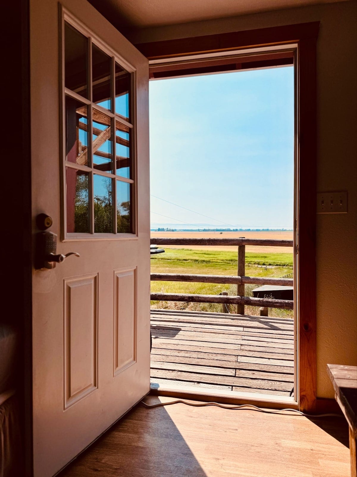 Esta es una cabaña de nueva construcción hecha con estándares de lujo y se encuentra en nuestra granja por un camino privado, situada en el extremo norte del lago Flathead. Las vistas son espectaculares, ya que puedes disfrutar de vistas de 360 grados del valle, el lago Flathead, el parque Glacier, las montañas Swan, la montaña Blacktail y los grandes cielos y estrellas de Montana. La única tierra entre nuestra granja y el lago es una reserva de aves acuáticas. Hay mucha vida silvestre en la propiedad y es un lugar maravilloso para disfrutar del valle de Flathead.