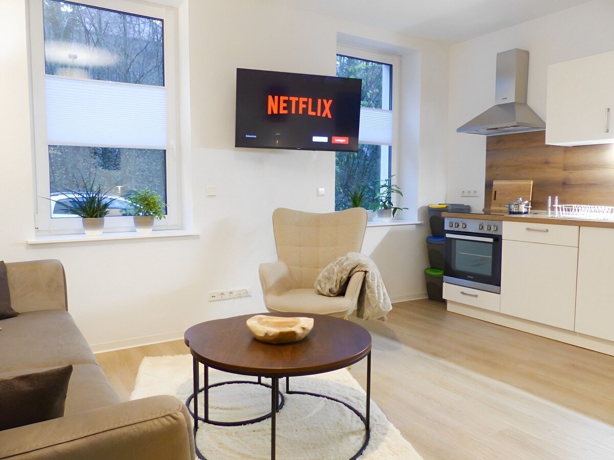 El estudio hogareño de "Das Kutscherhäuschen" cuenta con suelos de madera, muebles de madera maciza e iluminación suave. Cuenta con TV de pantalla plana con canales vía satélite, zona de estar y terraza. La cocina pequeña está bien equipada para preparar comidas caseras. También puedes encontrar varios restaurantes y cafés a 10 minutos a pie. El estudio cálidamente decorado ofrece wifi gratuito, una pequeña cocina y un televisor de pantalla plana con canales vía satélite.