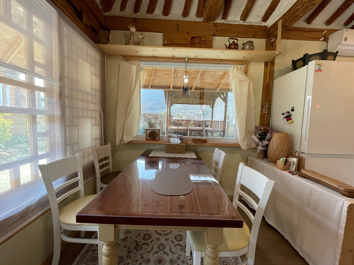 Disfruta de un descanso completo en un pequeño anexo en el corazón del tranquilo pueblo de Gurye. Hay Samkats, una pareja anfitriona y un perro llamado Half Moon en la casa principal. El anexo, que es un alojamiento, es una casa antigua que ha sido remodelada con las vigas de una casa antigua de 50 años. Es bueno para gente que le gustan los libros y los gatos y quiere descansar tranquilamente. El paseo marítimo Jirisan Dulle-gil y el río Seomjin están cerca. * La casa está en el centro del pueblo, así que abstente de hacer ruido excesivo, ya que puede ser una excusa para los aldeanos. * No hay televisión ni wifi en la casa. * Es una cocina pequeña con una estufa de inducción individual y un quemador portátil, por lo que solo es posible cocinar fácilmente. * Es una casa de campo, por lo que incluso si pones en cuarentena, los insectos pueden salir de vez en cuando. Además, el pollo del vecino es grande al amanecer, así que si tienes sueño ligero, toma nota antes de hacer una reservación. Cuando uses la barbacoa, trae carbón vegetal y plancha desechable y trae verduras de jardín cómodamente. Prepara leña cuando uses la fogata.
