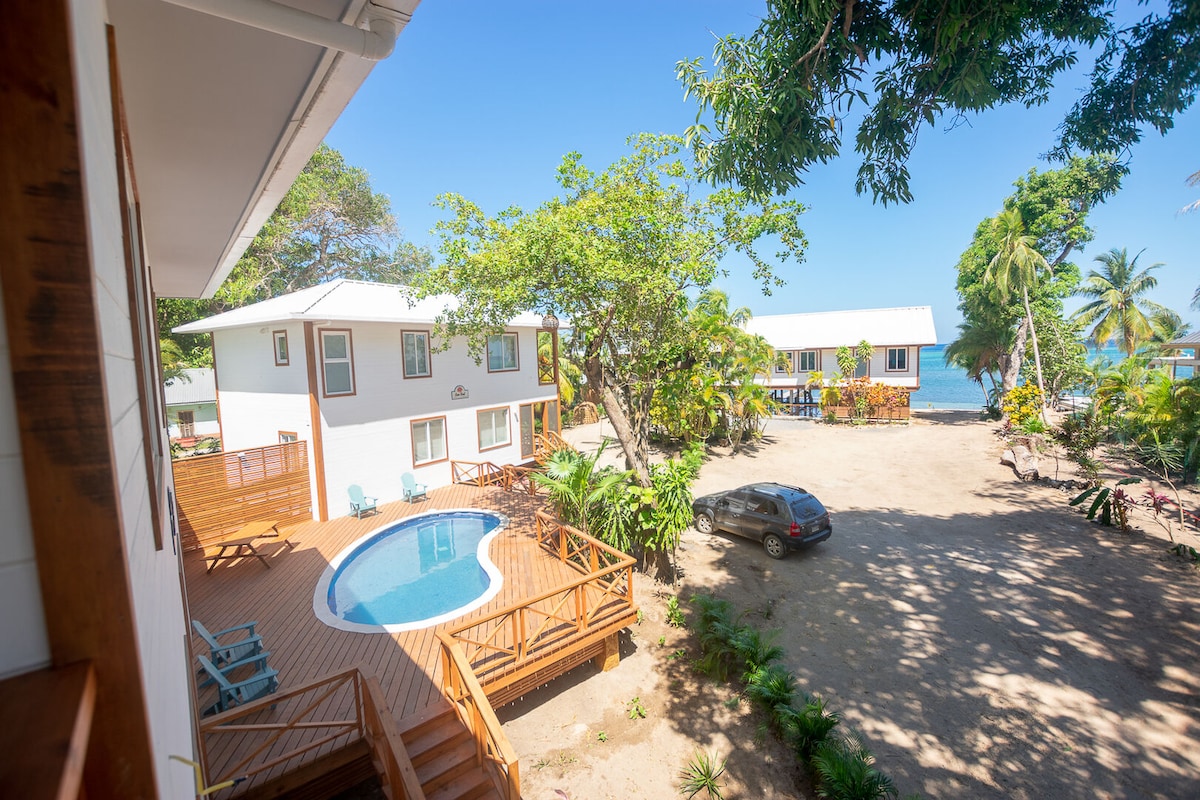 ¡Tu refugio tropical te espera! Sumérgete en nuestro prístino apartamento de dos pisos en medio de un exuberante bosque tropical. Con cuatro dormitorios iluminados por el sol, dos baños brillantes y un porche con brisa, la relajación es solo el comienzo. A un minuto a pie de la playa y de una piscina comunitaria, donde te esperan interminables días de felicidad bañada por el sol. Nada, practica esnórquel o bucea desde nuestro muelle privado. Disfruta de acceso gratuito al Mayan Princess Resort en West Bay.