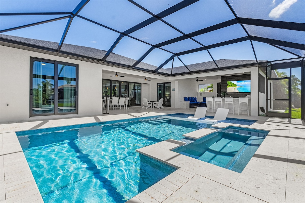 Relájate en el tranquilo abrazo de The Good Life Villa, tu refugio idílico enclavado en el corazón del paraíso tropical de Cape Coral. Disfruta de la relajante calidez de la piscina privada climatizada, toma el sol en el amplio lanai y crea recuerdos duraderos dentro de esta casa totalmente equipada y apta para niños. Explora el vibrante tapiz de playas de arena blanca, mariscos frescos y emocionantes aventuras en barco de Cape Coral. Disfruta del verdadero significado de la buena vida en The Good Life Villa.