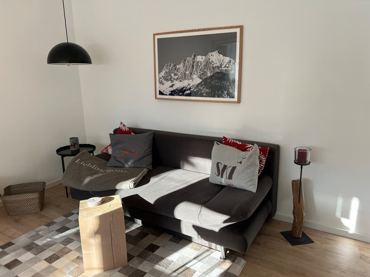 Unser Apartment ist mit Altholz, Stein, und hochwertigen Materialen im alpinen Stil eingerichtet. Die meisten Möbel sind schöne Einzelstücke. Wir haben uns den Kopf zerbrochen wie wir das größtmögliche Wohlfühlgefühl erzeugen können. Reinkommen und wohlfühlen, dabei die tolle Aussicht zum Predigtstuhl bestmöglich genießen können war das Ziel. Im Apartmenthaus gibt es einen großen Panoramapool und einen mickrigen Fitnessbereich😂Das Haus hat eine tolle Lage und eine sehr gute Erreichbarkeit.