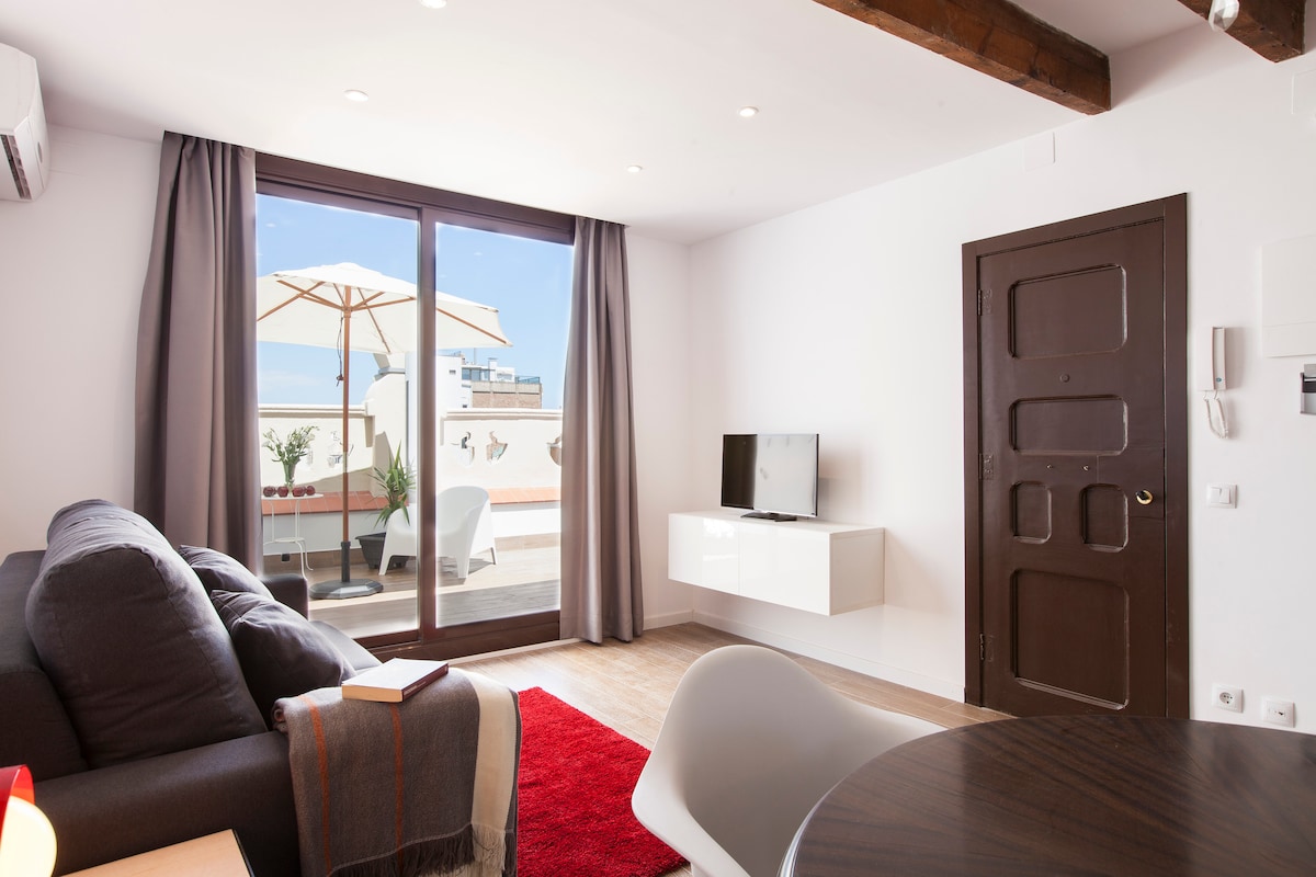 Elegante apartamento de 1 dormitorio con terraza comunitaria en Plaça Catalunya