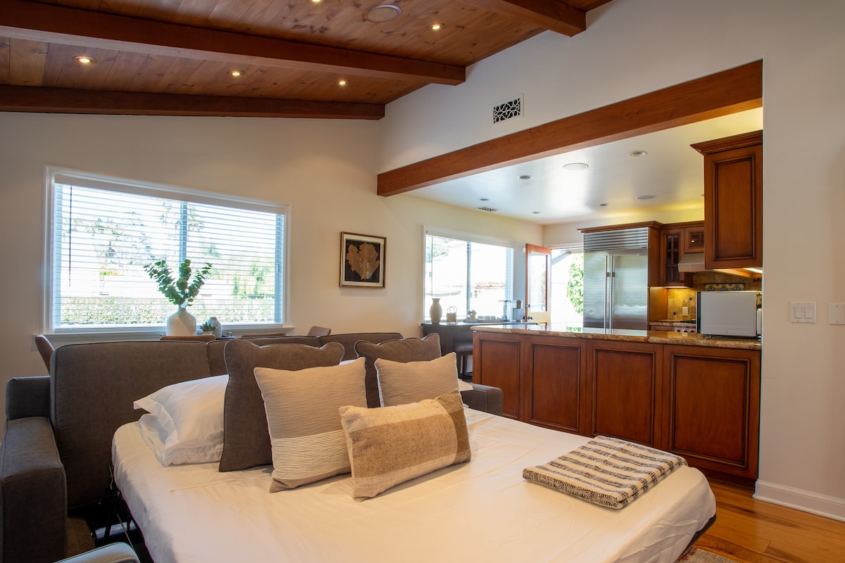 Bienvenido a Casita Suave, justo al lado del corazón del centro de Santa Bárbara. Este luminoso apartamento de un dormitorio y un baño tiene todo lo necesario para disfrutar de la Riviera Americana. Acabados limpios, wifi de alta velocidad, muebles elegantes y cómodos, y a salvo de la calle. Hay estacionamiento fuera de la calle y este complejo solo tiene 8 unidades en total. Te encantará alojarte aquí. Hay un sofá cama de espuma viscoelástica muy cómodo en el que puede dormir una pareja adicional.