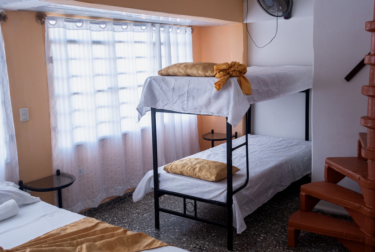 Iliana e Iván, somos 2 personas muy hospitalarias, hablamos ingles medio, nos esforzamos por ofrecer un exelente servicio. Casa Independiente , capacidad máxima de 9 huéspedes. Dos apartamentos independientes en 1 nivel, totalmente climatizadas, 2 baños con agua fría y caliente, dos cocina,dos terrazas al aire libre.vistas panorámica a la ciudad, Estamos a 7 minutos caminando del centro de la ciudad. Otros servicios pagos. Desayuno, masaje, guia turística, aparcamiento,lavandería
