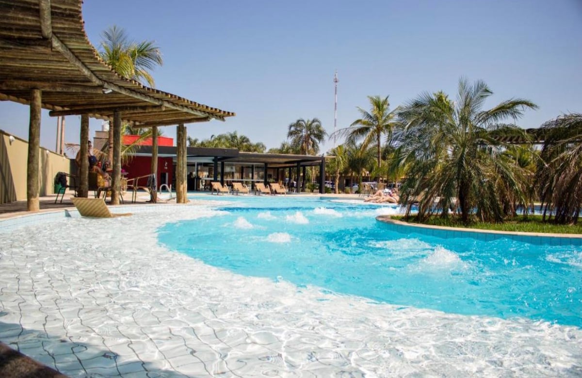 Toma a toda la familia , debes traer sartén eléctrica o fogao portatil ,ya que no hay estufa de gas, tiene freidora de aire como en la foto, tiene barbacoa de figobar, 7 alojamientos todo c aire acondicionado.picinas qe bar húmedo termal ,no gastado alimentar el acceso a la parana,grande, paranaiba junto al río ,pesca , parque acuático y restaurantes