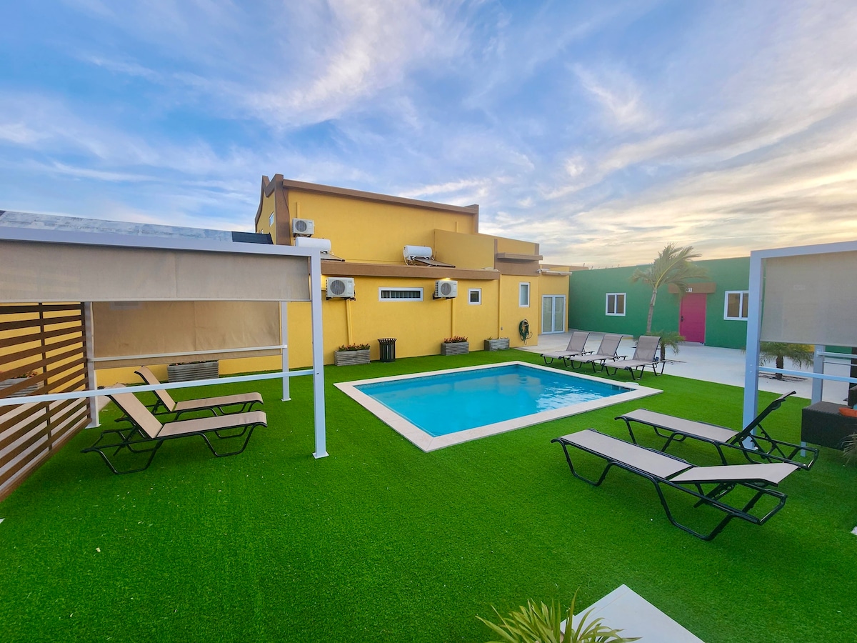 As we say in Papiamento “Bonbini” - Welcome to Palmita Oasis. Forget your worries in this spacious and serene apartment with your own private pool and surrounding area maximized for relaxation and located less than 10 minutes driving to downtown Oranjestad and less than 15 minutes driving to our famous Eagle Beach.