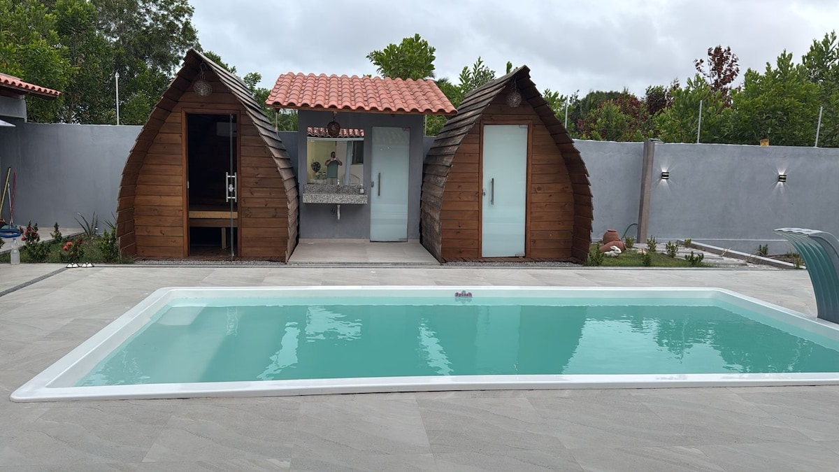 🏡 Casa de Pedra: encanto, comodidad y vista al mar Casa de Pedra es la escapada ideal para aquellos que buscan encanto rústico moderno, comodidad y una vista espectacular del mar 🌅 Con piscina privada, jardín, porche y zona gourmet con barbacoa, es perfecto para relajarse en familia, con amigos o en pareja. 💛Todas las habitaciones tienen aire acondicionado, lo que garantiza comodidad y privacidad. Ubicado en una comunidad cerrada, a solo 800 m de la playa de Taperapuã y del comercio local 🏖️ 🌿 ¡Apto para mascotas con personalidad!🏖