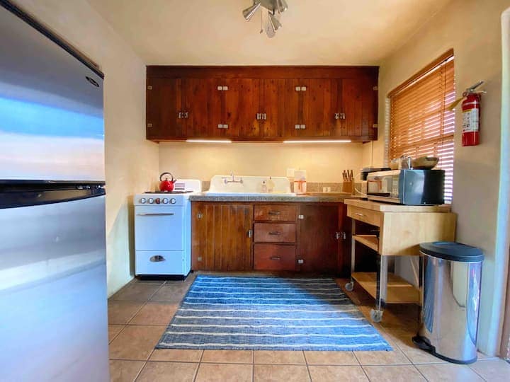 You will love to call our charming property home base while you explore Santa Fe! This darling southwest style casita is part of a historic Route 66 motor lodge that has been lovingly renovated and is tucked in a quiet and safe residential neighborhood on 4 acres. It is located only 2.25 miles from the historic downtown Santa Fe Plaza. There is a neighborhood park with a playground and walking trail right next door. Oh, and you'll love the pool! (Pool open Memorial Day until it gets cold)