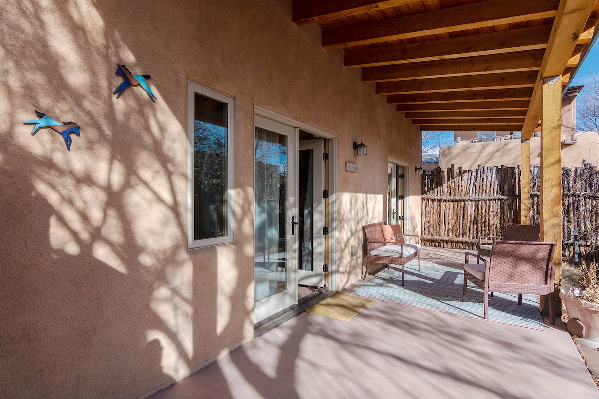 ¡Bienvenido a Santa Fe! Esta encantadora casa de campo tipo estudio y mi casa comparten la propiedad en este tranquilo barrio residencial. La casa está llena del encanto de Santa Fe con un interior acogedor y bonito, tragaluces y mucha luz natural, una cocina totalmente equipada, armarios hechos a mano, azulejos mexicanos, una cómoda cama tamaño queen y un patio con jardín privado. Es un refugio tranquilo pero céntrico, a solo 2 millas de la Plaza/centro de la ciudad. Es un lugar encantador para parejas, aventureros solitarios y viajeros de negocios.