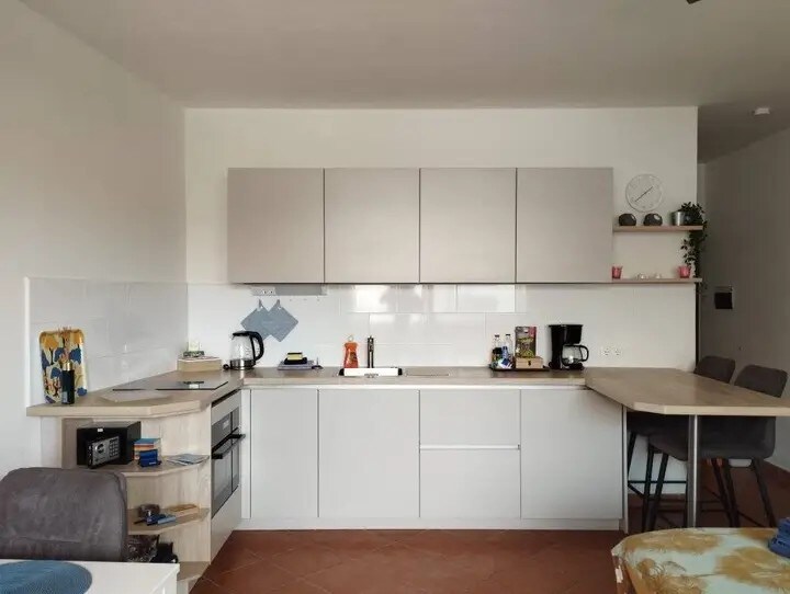 Tu casa lejos de casa Encantador apartamento, acogedor y luminoso, completamente reformado, ubicado en un entorno tranquilo y cuidado con una gran piscina, zonas al aire libre comunes y hermosos jardines. A dos minutos a pie de la hermosa playa de Santa Maria y a 5 minutos del pueblo. Desde el balcón se puede disfrutar de este oasis de paz con una maravillosa vista del atardecer.
