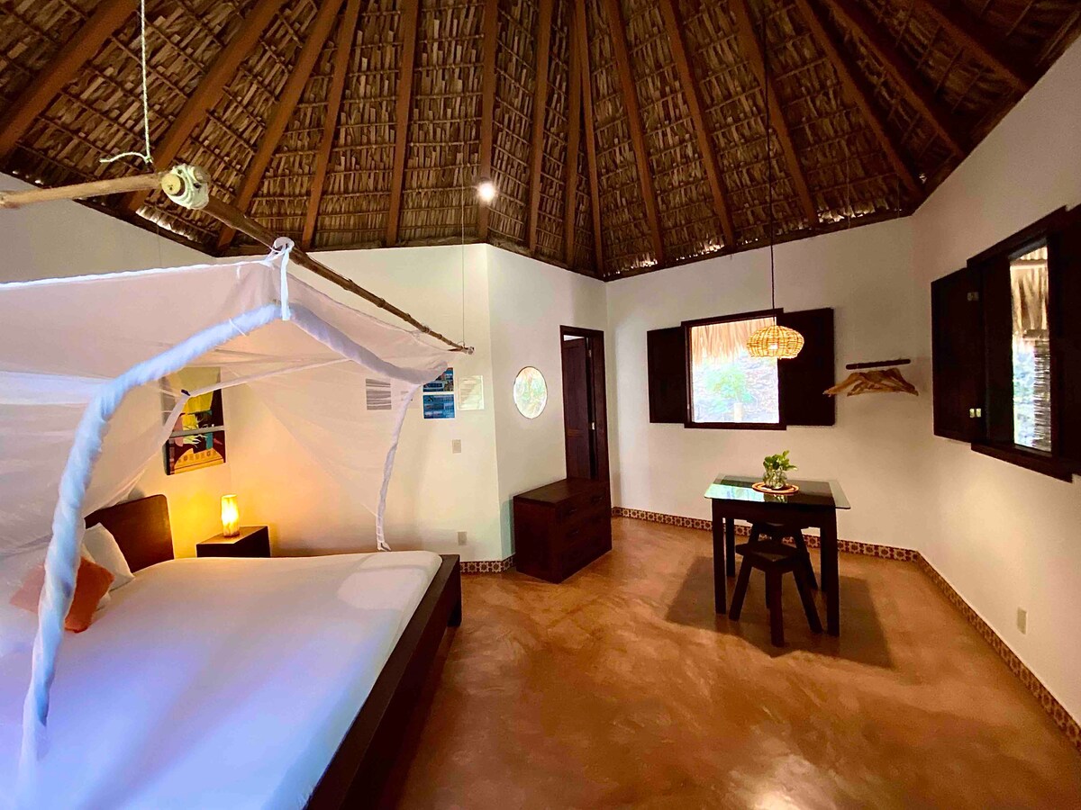 Cabaña ubicada en Casa "Luna de Piedra" A la playa se llega en 5 minutos caminando, de igual manera a la zona de restaurantes, cafés y bares La cabaña cuenta con cama KS, cocineta, baño privado, caja de seguridad, closet, ventiladores, terraza y hamaca No cuento con aire acondicionado ni estacionamiento pero puedo conseguir espacio para tu auto si me avisas antes En el mismo terreno se encuentra una casa y otra cabaña. En el día puede haber ruido de construcción no fuerte de mis vecinos.