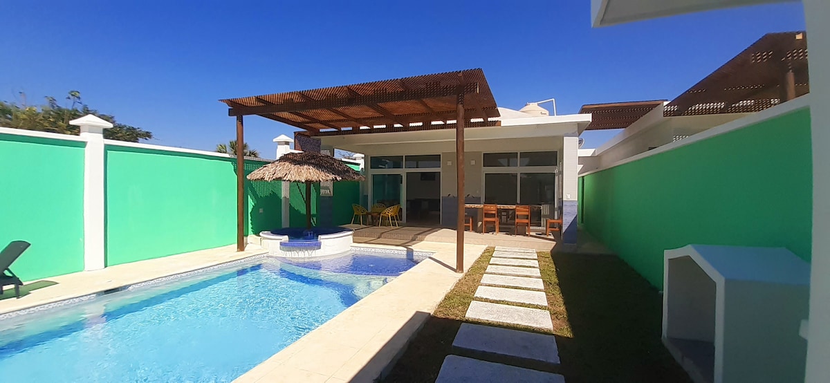 Hermoso bungalow familiar para gozar de las mejores playas de Monterrico salida al mar piscina, jacuzi,