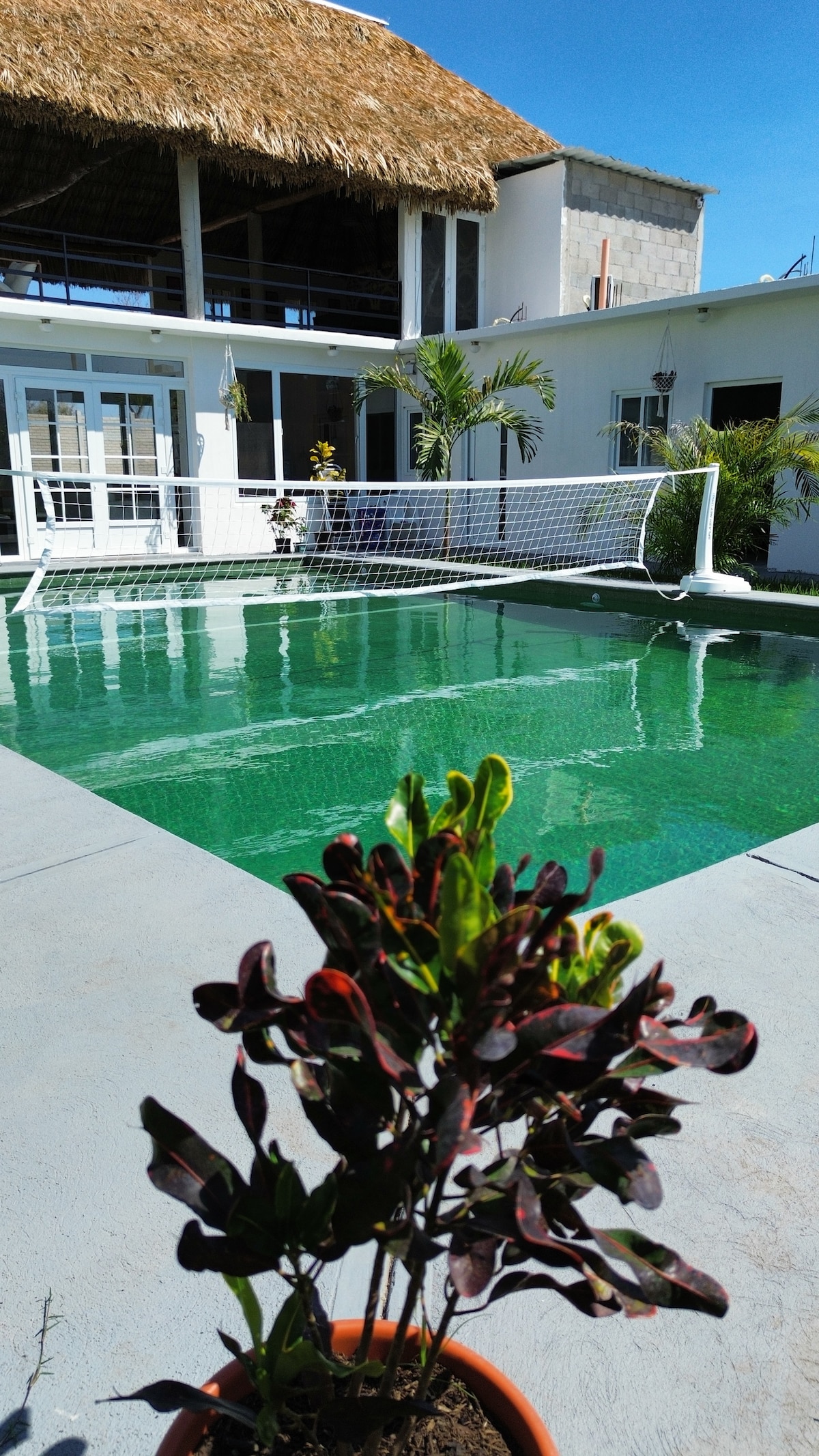 estilo moderno en un ambiente relajado. la residencia está hubicada donde la mayoría de los recidentes son nativos del área , es una área tranquila y segura. Cuenta Con piscina privada ,con profundidad de un metro y medio y área para hamacas Terraza . Asador cocina. Y recámaras con bano privado . Depende del costo y promociones pueden alojarse hasta 18 personas por un costo extra