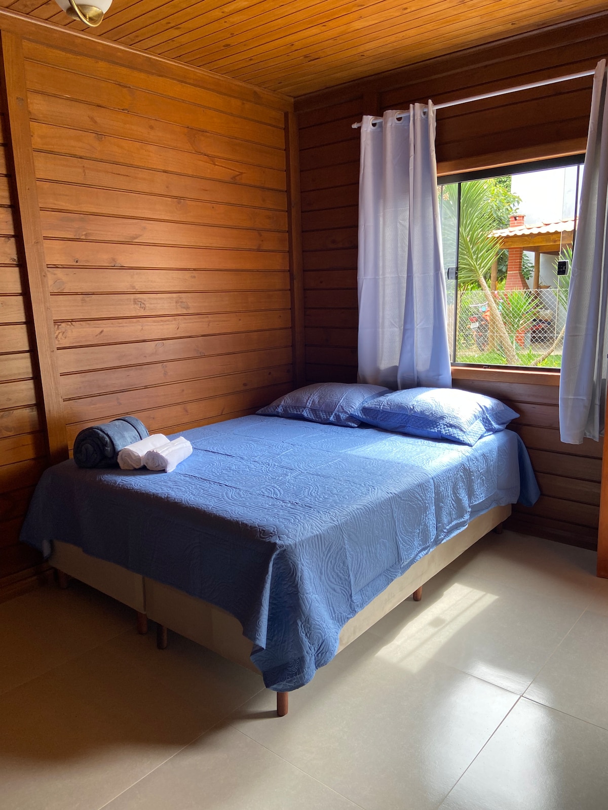 Chalé acogedor en el Circuito Caravaggio en Santa Teresa. Ideal para una pareja o pareja con 2 hijos. Cuenta con cama de matrimonio, cama individual, televisor inteligente, aire acondicionado, cocina de apoyo con minibar, freidora de aire, microondas y cafetera. Hay ropa de cama, toallas y secador de pelo disponibles. Ubicación privilegiada, cerca de bodegas y excelentes restaurantes. ¡Perfecto para un fin de semana tranquilo! Ubicado en el sitio: hostal. Desayuno el viernes incluido.