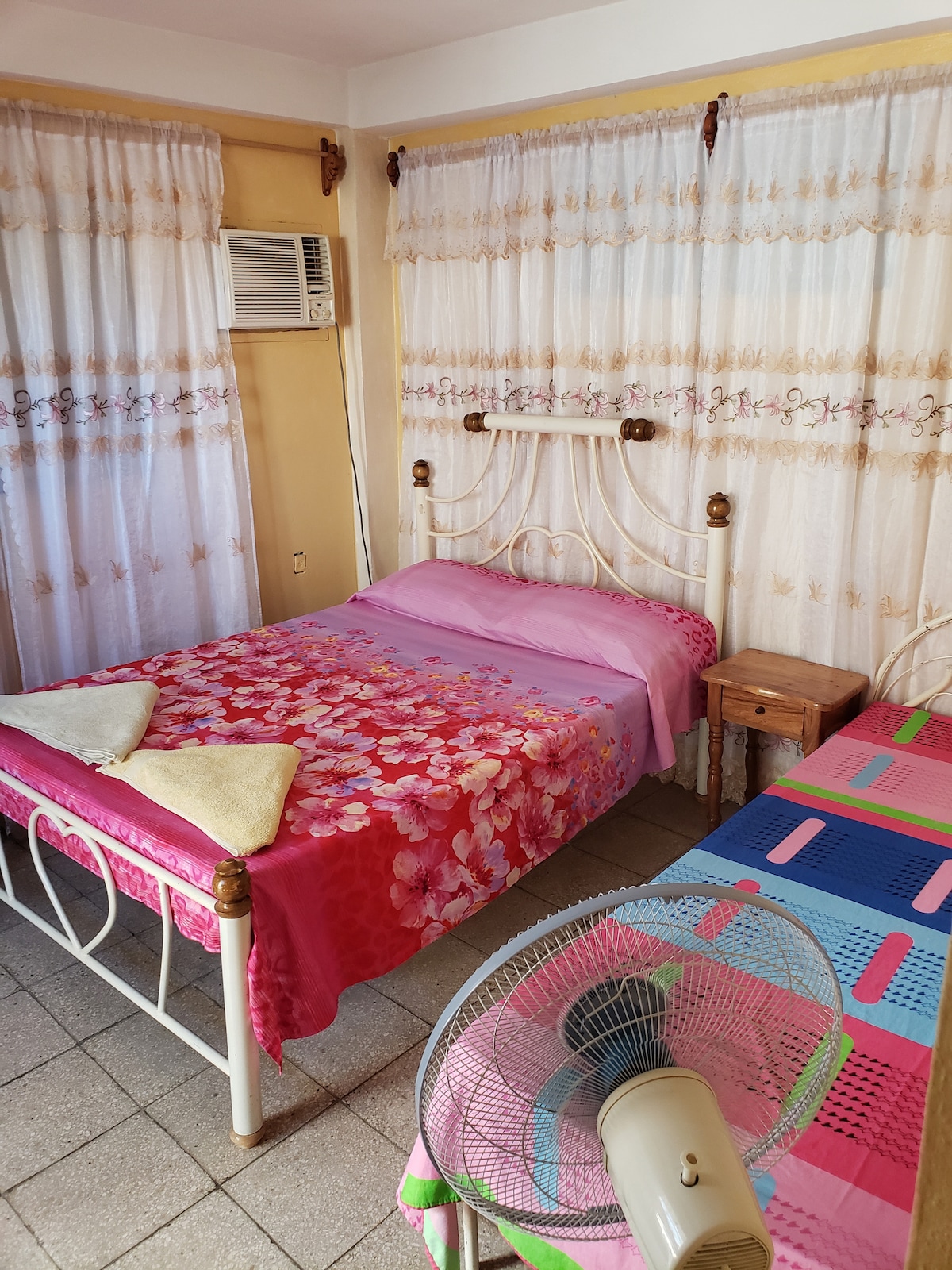 Casa grande en el centro de la cuidad, cerca a pie de todos los comercios, lugares culturales y festivos ; calma total al interior de la casa. 3 habitaciones con aire acondicionado, agua fria y caliente, 2 terrazas , 1salon y 1 cocina. Posibilidad de comer (desayuno o cena ) preparada por la proprietaria (no incluido) o por usted mismo ya que hay une cocina a votre disposicion completamente equipada ; tienen completo acceso a todas las areas de la casa, alquilando minimo 2 hab