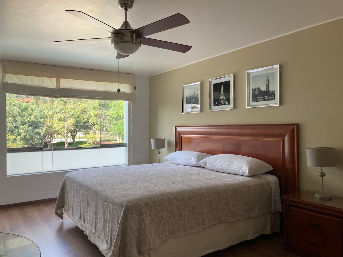Estudio con cama tamaño king, corazón de Miraflores, garaje, gimnasio, aire acondicionado, wifi