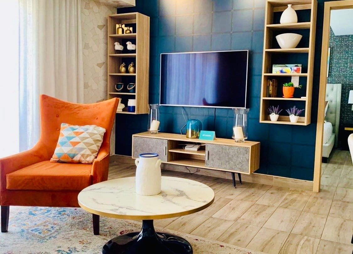 •Located in Piantini, the heart of Santo Domingo •Spacious 810 square feet w/1 bedroom 1 bed + 1 sofa bed •Great for families and remote work •Resort style roof top w/ pool, jacuzzi, gym and massage area •Roof top is a shared space •24/7 Lobby service •Kitchen w/all basic appliances •Balcony with nice view •50" smart tv •Free wireless Wi-Fi, Netflix and private parking •Few minutes walk to great places to relax, eat and shop