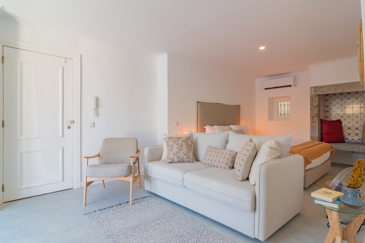 Casa de campo tranquila y aislada en las colinas de Sintra, ubicada dentro de una finca histórica privada que alguna vez fue el hogar de Sir Arthur Conan Doyle. Casa Bohemia ofrece privacidad absoluta, una sala de estar llena de luz con techo de vigas de madera y chimenea, un dormitorio tamaño queen con baño privado y un patio privado con un baño de piedra antiguo para un baño romántico al aire libre. Jardín, terraza, estacionamiento y naturaleza por todas partes.