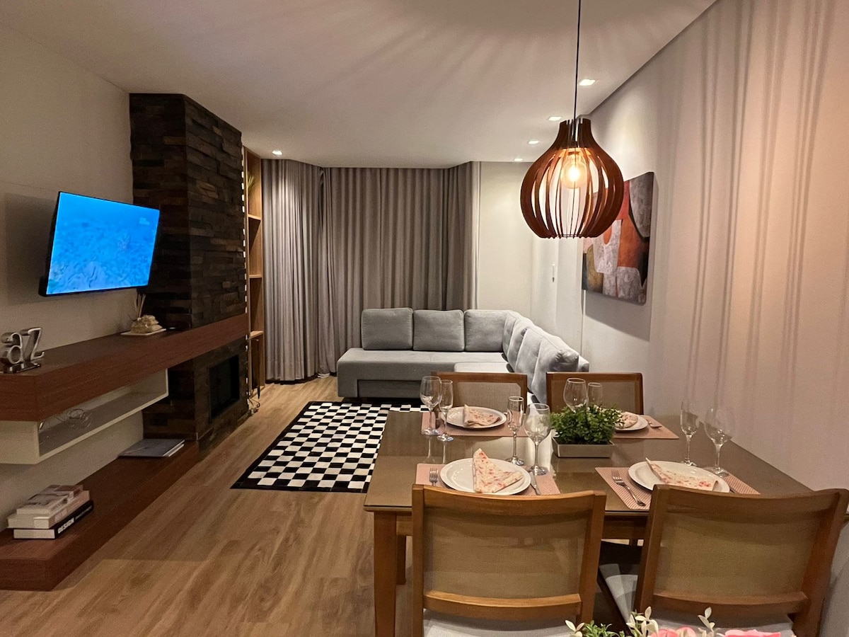 ¡Vive momentos únicos en la Serra Gaúcha! Alójate en un apartamento completo con la estructura de un hotel y la comodidad de un hogar. Chimenea, piscina climatizada, sauna, sala de juegos, gimnasio y mucho más. Nuestro apartamento está en una ubicación tranquila, a solo 700 metros de la Catedral de Piedra (tarjeta postal/centro de Canela). Está situado en una calle residencial arbolada, con fácil acceso a cafeterías, restaurantes y tiendas. Junto a la zona verde, en contacto con la naturaleza. Servicio de desayuno (con cargo adicional) entregado en el apartamento.