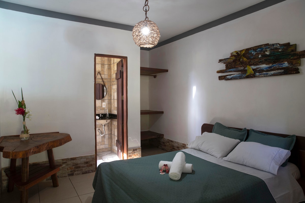 Esta suite se encuentra en Casa Beija-flor Pousada, que está situada en la playa de Boca da Barra, ¡a 20 pasos del mar! Ofrecemos una habitación encantadora, moderna y con todas las comodidades que te mereces. Tenemos un jardín con césped, un amplio balcón con hamacas y una zona con mesas. La suite 3 tiene una cama doble, un baño privado y cortinas. La habitación ofrece ventilador de techo, aire acondicionado, minibar, vasos, abridor de vino, estantes y entrada individual. Desayuno incluido