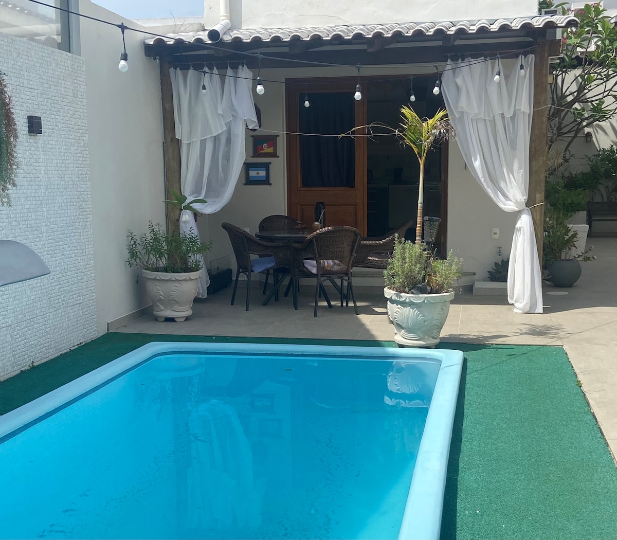 Relaxe com toda a família nesta acomodação tranquila. Piscina.. Garagem fechada para até 3 carros ou camionetas.. Ar condicionado em todas as acomodações... Wi - fi ...Rua Monitorada por câmeras de vigilância... próximo a Br 290.