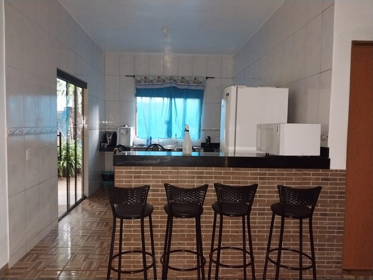 Bienvenido, disfrute de una auténtica casa, luminosa, fresca y espaciosa. En el mejor barrio de Alto Paraíso, a 2 minutos de la avenida principal. Completamente recién construida, cuatro dormitorios, sala de televisión, cocina equipada, piscina y sauna. El aire acogedor del bosque nativo hace que este lugar sea perfecto para descansar y contemplar la naturaleza y las aves que nos visitan. Siente la paz que este lugar proporciona. Diseño diferenciado y armonioso *8p, Wifi, Piscina, Sauna, Jardín y fogata.