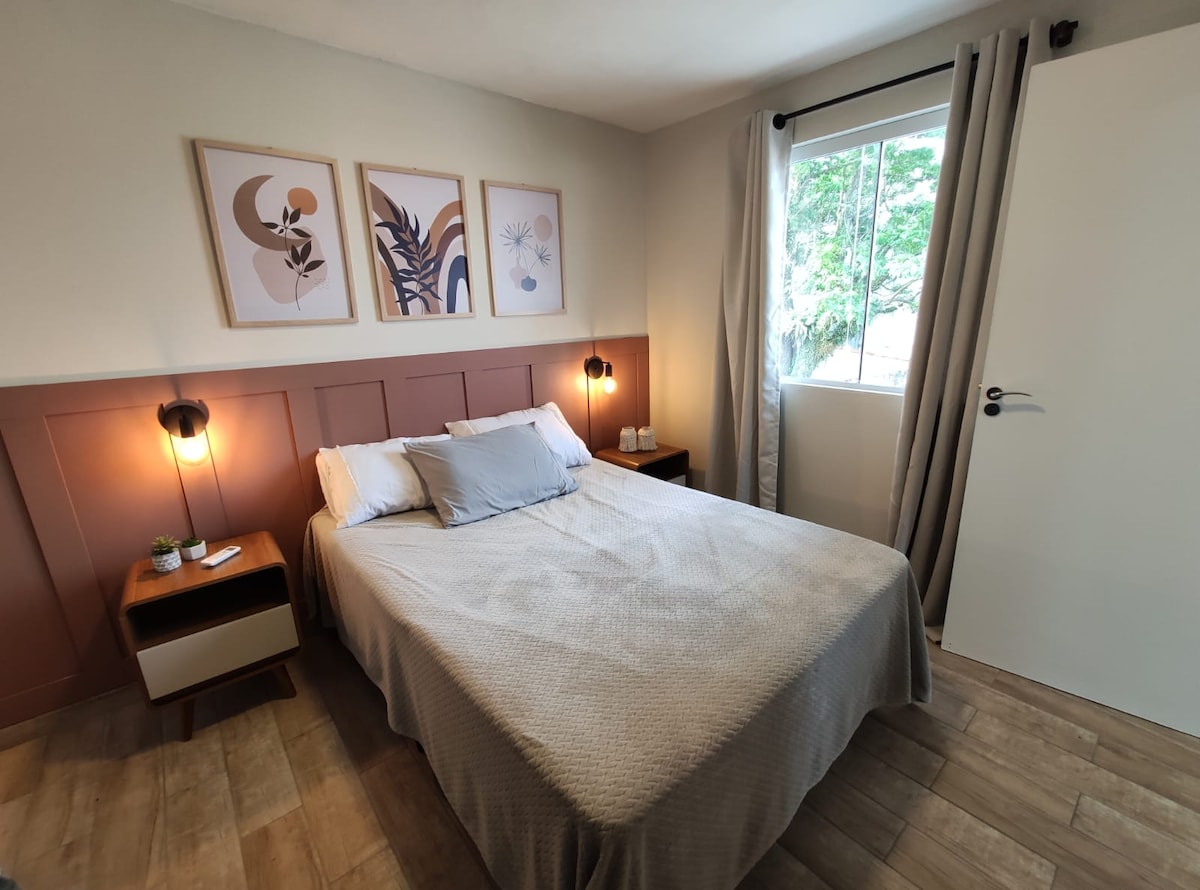 Apartamento completo y funcional ideal para una persona o pareja, también puede acomodar a 2 personas más en el sofá cama de la sala, son 28m² muy bien distribuidos con mucha comodidad y calidez. En el dormitorio tenemos una cama doble, aire acondicionado y espacio para acomodar tus pertenencias. La cocina está bien equipada, con todo lo necesario. Ubicación de fácil acceso tanto a la isla como a la BR101. Plaza de aparcamiento gratuita en la planta baja. Acceso al condominio a través de una caja con contraseña donde guardamos la llave.