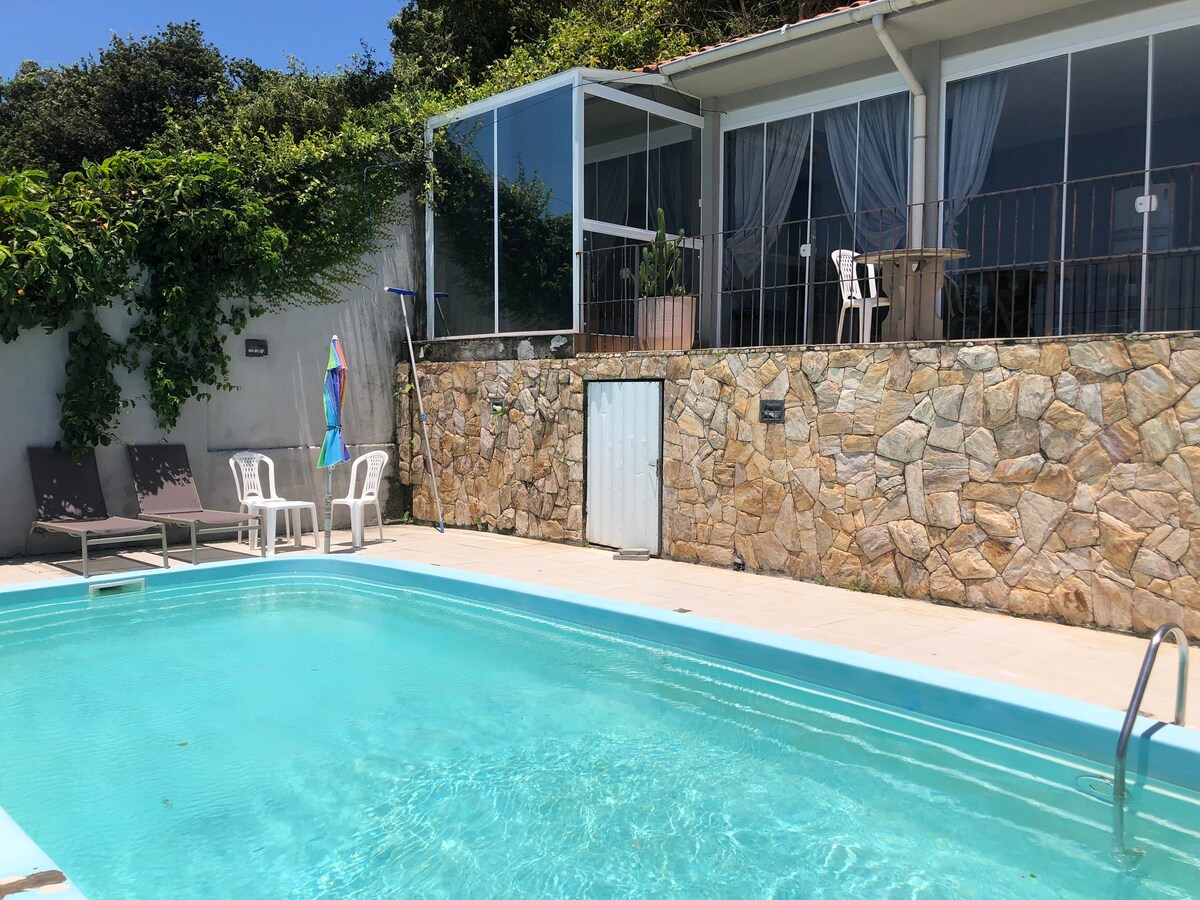 lugar tranquilo con una vista maravillosa de la costa de sao jose. En este espacio debes subir 4 tramos de escaleras, nuestra casa es tranquila, sin ruido, súper ventilado y puedes disfrutar de una piscina, tu carga. Tenemos 2 dormitorios con dos camas dobles y un colchón individual más adicional si es necesario y aire acondicionado en los dos dormitorios. Cocina completa con barbacoa, donde puedes preferir hacer esa deliciosa comida en una de las vistas más hermosas de sao jose.