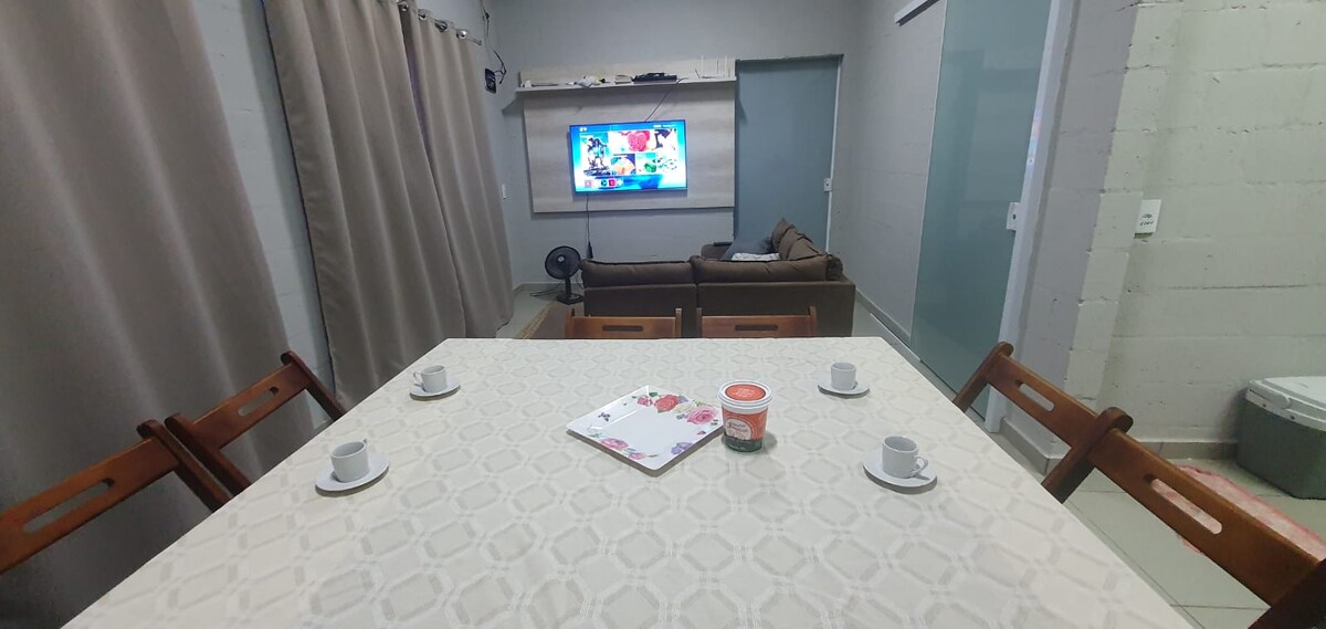 Relájese y disfrute de la tranquilidad del barrio de Furnas, en São José da Barra Nuestra casa tiene dos dormitorios, una zona gourmet con parrilla y un amplio patio con césped, ideal para familias y grupos pequeños El espacio incluye ventiladores, cocina completa y proporcionamos ropa de cama y toallas para su comodidad ✅ Estacionamiento para varios coches ✅ Amplio balcón para relajarse ✅ Ubicación tranquila y segura 📍 A pocos minutos del lago Furnas y de los paseos turísticos de Capitólio y Canastra