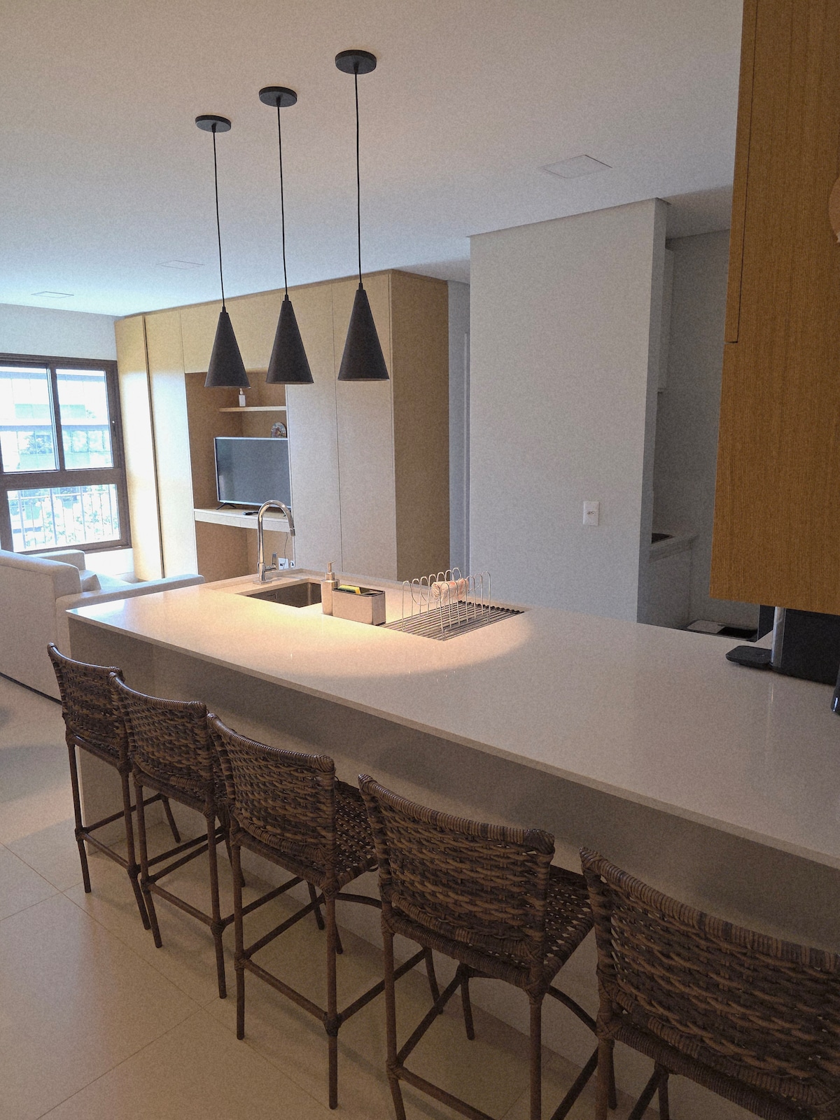 El apartamento está situado en una zona privilegiada de la ciudad, y totalmente planificado para la vida moderna, 2 dormitorios, incluyendo una oficina en casa adaptada e integrada en el ambiente de la sala. Equipado con sábanas y toallas de lujo, TV, internet, utensilios de cocina, microondas, nevera, licuadora, bebedero, airfryer, cafetera, parrilla, juego completo de ollas, lavadora de última generación. ¡Ambientes con aire acondicionado! Condominio: oficina en casa, gimnasio, piscina, parque infantil.