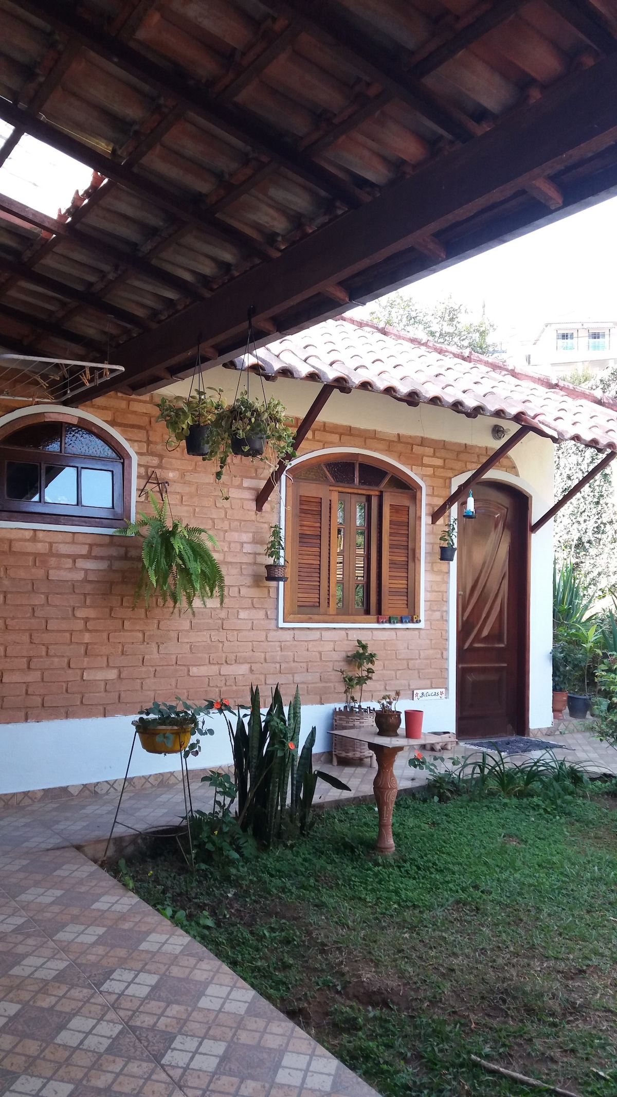 Ambiente familiar, composto de uma sala confortável, com sofá-cama e com varanda, mais um quarto com cama de casal e colchão de solteiro extra. O espaço possui uma copa de apoio para refeições rápidas (café da manhã), e acesso independente com possibilidade de garagem se quiser. Vista para a piscina e jardins, diversas arvores frutíferas. O bairro é residencial e silencioso. Decoração intimista e aconchegante, comodidade nas instalações.