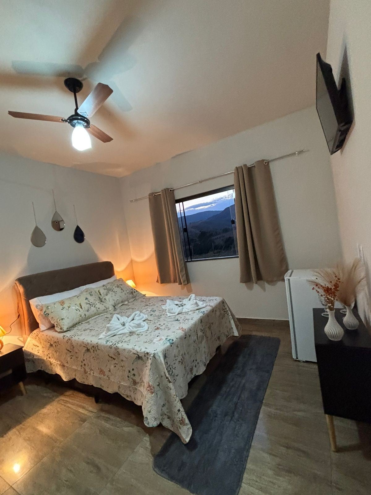 El chalet Yellow Jasmine se compone de una suite grande y cómoda, con un minibar, ventilador de techo y un balcón en la parte delantera. Ofrecemos a los huéspedes un delicioso y abundante desayuno en un hotel asociado de la ciudad. Su privilegiada ubicación reúne la más bella vista de la Serra de Delfinópolis con privacidad y confort al mismo tiempo. Está a menos de 2 km del centro y de las principales tiendas.