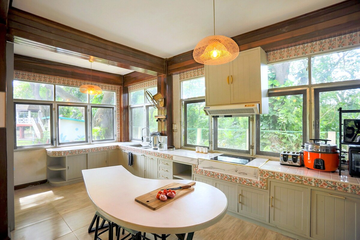 ✅Toda la casa es ✅ideal para grupos que admiten mascotas ✅pequeñas Escápate de Bangkok para relajarte o trabajar a distancia en la naturaleza. Por qué te encantará: ⭐️Privacidad: casa completa de 3 plantas (hasta 24 personas). ⭐️Grandes árboles: relájate en la naturaleza y ve ardillas blancas ⭐️Netflix, ping pong, tabla de tenis, barbacoa, biblioteca, ciclismo, piscina (2 minutos en auto). Casa ⭐️del árbol: zona de hamacas y vista del jardín ajardinado Disfruta de un tiempo de calidad en la naturaleza y observa cómo las ardillas blancas saltan de un árbol a otro. * Los huéspedes necesitan su propio transporte para desplazarse.