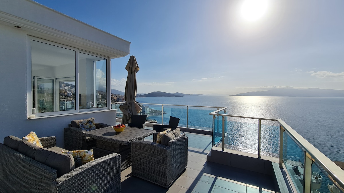 Disfruta de tu estadía en Saranda en nuestro nuevo apartamento de lujo ubicado a solo 30 metros de tu propia playa privada. Situado en una zona tranquila pero cerca del centro, el apartamento está recién amueblado con una decoración moderna e incluye un balcón con vistas a las montañas circundantes. Puedes encontrar supermercados a la vuelta de la esquina.El centro de la ciudad está a 5 minutos en auto, con muchos bares, discotecas y restaurantes. Las hermosas playas de Ksamil, que no te puedes perder, se encuentran a solo 8 minutos en auto.
