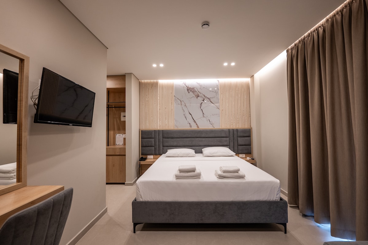 Beachfront Room with Side Seaview Located just a few steps from Sarandë’s best beaches, this charming beachfront room offers a serene escape with a beautiful side seaview of the Ionian Sea. Enjoy the calming breeze from your private balcony, unwind in comfort with modern amenities, and take advantage of being just moments away from the city’s vibrant coast. Perfect for those looking to relax by the sea while exploring the heart of Sarandë.